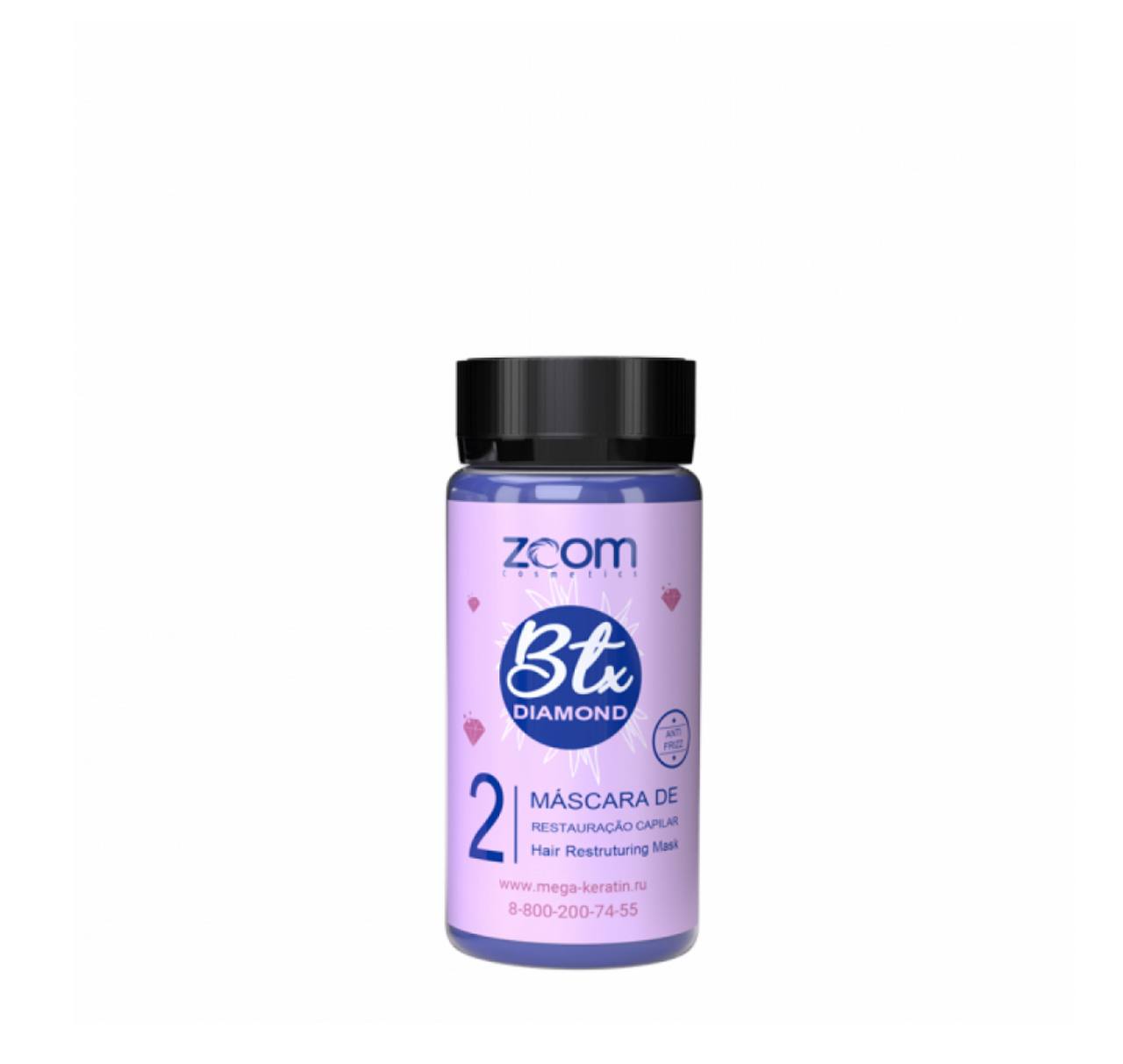 Ботокс для волос ZOOM BTX Diamond абсолютный бриллиант в линейке ZOOM, который с момента своего появления завоевал сердца всех мастеров. Абсолютная уникальная формула продукта реконструирует повреждённые пряди, создавая защитный барьер от негативных факторов. Разглаживает. Отлично справляется с легкой/пушистой/пористой славянской волной, обволакивая прочной полимерной пленкой. Нейтрализует желтизну. Состав продукта включает в себя синий пигмент, что позволяет волосам приобрести более холодный оттенок. Содержит аминокислоты (Цистеин, Эластин и N-Ацетил), которые встраиваются в волос и служат прочным строительным материалом, а так же огромное количество полезных ингредиентов (витамины А, группы В, С, D). Подходит для поврежденных волос механическим/термическим путём 1, 2, 3, 4 степени повреждения, максимально увлажняет и придаёт ослепительный блеск.
